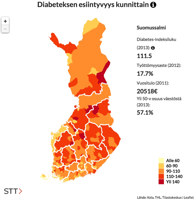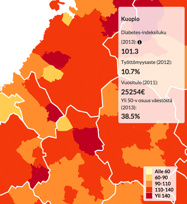 Working together with a writing journalist, the incidence of diabetes in Finland was explored. The process included collecting data from different official sources and combining these to create the base dataset for the story.