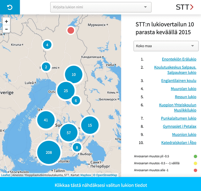 The project included all aspects of the application development process, from developing the back end in node.js, data processing and visualization to designing and implementing the front-end. More thorough documentation of this process can be found in my thesis paper.